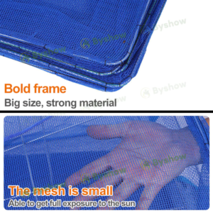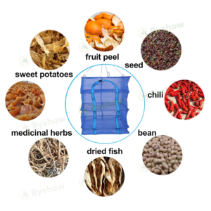 This product has good texture, small nets, and durable materials are strong and not easy to break. The excess includes saving power with natural sunlight, easy to use through zip in both parts of the inside. Lightweight and foldable when not in use, with large capacity and effective. Easy, clean, and safe, it prevents flies, cockroaches, birds, rats, or animals from biting food. It can dry a variety of products including fish, shrimp, banana, fruits, herbs, pork, coffee powder and seeds.