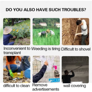 2. Quick Cleanup: Say goodbye to kneeling or bending over to pull weeds out of the ground with this outdoor cleaning shovel that can quickly clear away unwanted vegetation within minutes. Its compact size makes it easy to store and carry around, while its connector fits any handle, allowing for easy adjustment and fixation when cleaning up weeds.